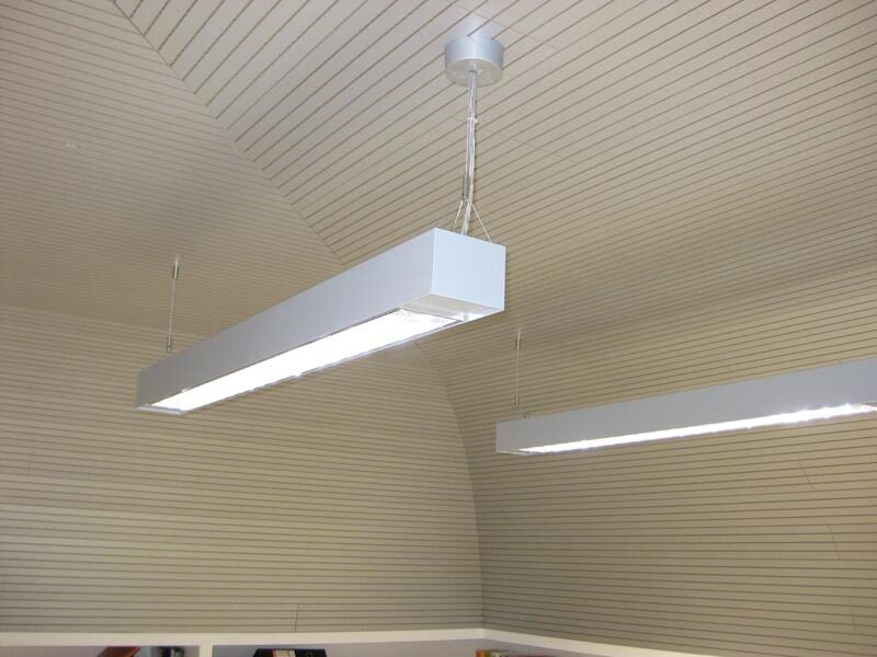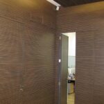 Os painéis Nexacustic são instalados com perfis e clips metálicos. Os perfis são dispostos transversalmente aos painéis. A fixação dos painéis aos perfis é feita com clips metálicos embutidos.