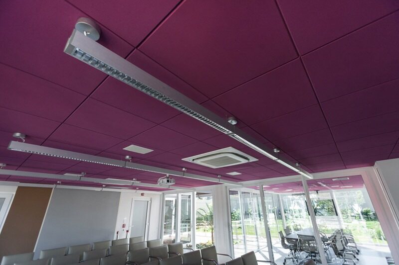 • A tinta utilizada na pintura das placas foi desenvolvida especialmente para manter as características retardantes à chama, de absorção sonora e flexibilidade da placa.